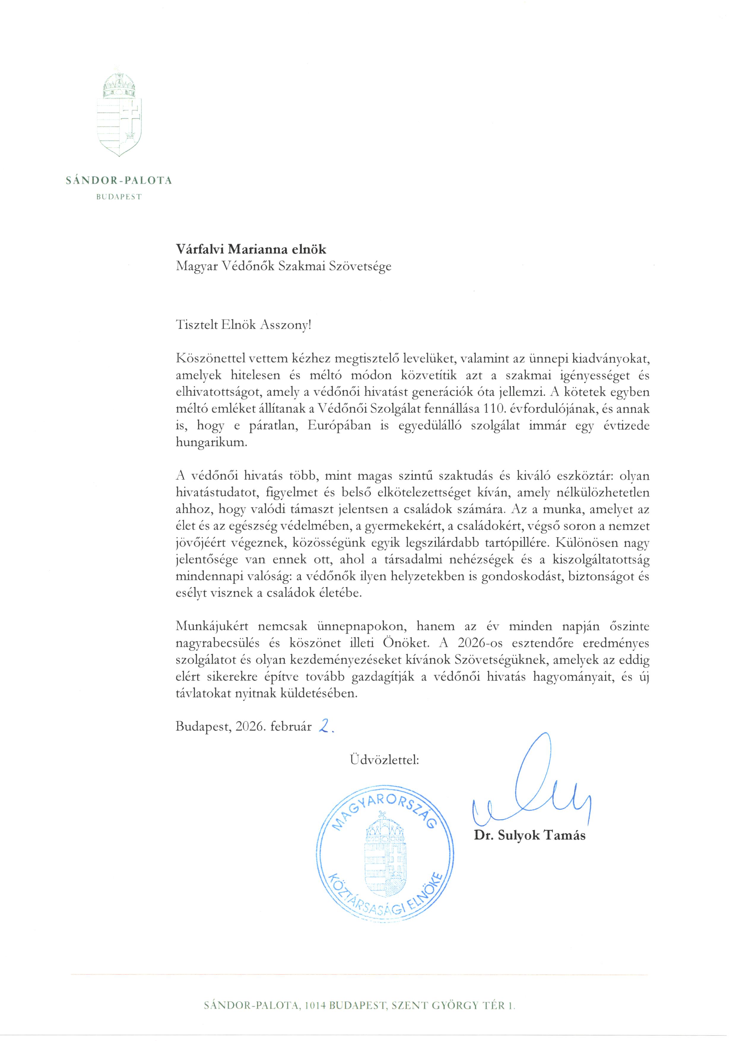 A 110. és 10. évfordulókhoz kapcsolódó rendezvények, és kiadványok, a magyar védőnői szolgálat érdemeiről, tevékenységeinek elismeréséről szóló köszönőlevelek