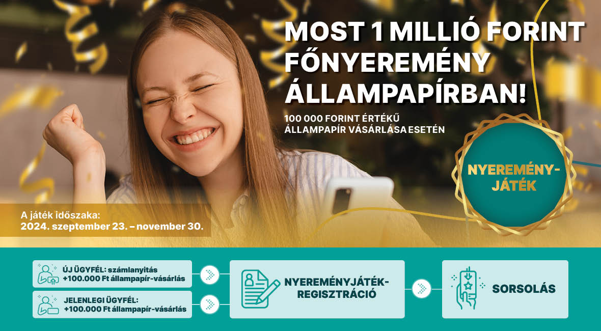 A nyereményjátékban az új és jelenlegi ügyfelek között is 1-1 millió forintos fődíj, de összesen 10 millió forint értékű, állampapír vásárlására beváltható utalvány, valamint egyedi ajándékcsomagok találnak gazdára.